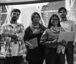 Group of Happy Multiethnic Indian Team of Female and Male Managers, Specialists and Business Professionals Posing for Camera and Smiling. Portrait of a Confident South Asian Team Leader Standing First